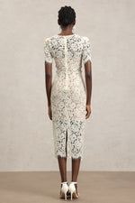 Rochie midi crem din dantela cu croi mulat Livia